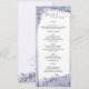 Det här elegant bröllop-menykortet är vackert designat med delikata blommigtar med vattenfärg i skuggor av lila och grått, och skapar en vintage och en tidlös charm. Perfekt för romantiska receptioner, den här menyn innehåller starter, val av köttfärs, kyckling eller fisk och en dekadent bröllop-dessert. Den antika teckningen av blommigt och den gigantiska typografin gör att den här menyn inte bara är en funktionell matgata utan också en keepsaké som kompletterar hela bröllop. Med det gamla vattenfärgstemat stil, botaniska detaljer och sofistikerad design, tillför detta menykort både skönhet och förfining till inställningen bröllop bord.