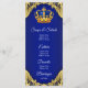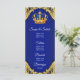 Meny för prinsens baby shower med vacker kunglig blå och guld krona på en elegant kunglig blå och guld virvlande bakgrund. Dessa kungliga blå och guld prins baby shower menyer är lätta att anpassa för ditt evenemang genom att helt enkelt lägga till dina detaljer i den teckensnittsstil och layout du föredrar.
