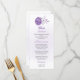 Romantiskt bröllop-menykort med vitt och lila blommor. Uppgifterna om glitter simuleras. FÖR MOR MATCHING PRODUCTS, kontakta mig.