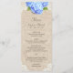 Rustic Blue Hydrangea Snöre & Burlap Bröllop Menu.