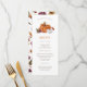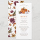Meny för Thanksgiving-pumpa. Denna söta och stilrena höstliga meny för Thanksgiving middag har vackra akvarellmålade brända orangea och vita pumpor och höstblommor med ett lekfullt mönster på baksidan.