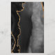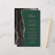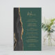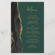 Den moderna bröllop-menyn på den lämnat kant i eleganten har en svart vattenfärgad agate gräns som trimmas med faux guld glitter. Anpassadet kombinerar handskriftsskript för guld-färgad och kopparplåt typsnitt på en mörk som framträder mot gröntens bakgrund. Den omvända sidan har en matchande svartvit och guld agate-design.