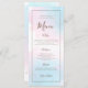 Utskrivbar Watercolor Rosa Teal Silver Confetti Bröllop-meny finns digitalt tillgänglig och tryckt. En bakgrund av vattenfärgsblått och nyp ihop med silver konetti stänk ge.. dessa menykort känns som en sommar! Den bruna typografin är lätt att personlig till dina egna detaljer och den vita delen av bakgrunden och färgen kan ändras om du så önskar via Redigera ytterligare alternativ. Pastellfärgerna och silver stänk fortsätter på baksidan.