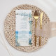 Förbättra din bröllopsmottagning med vår tropiska Watercolor Beach WedMenu. Den här menyn är designad för att komplettera vår "Tropical Paradise"-samling i bröllop, och lägger till lite kustelegans till din bord-dekanter. Den här menyn innehåller en fin vattenfärgbild av en tropisk strandscen, komplett med att handflatan träd och serene vågar, och anger perfektens ton för ett badbröllop eller destinationsbröllop firande. Våra menyer är utformade med uppmärksamhet på detaljer och trycks på högkvalitativa karddjur, vilket garanterar hållbarhet och en lyxig känsla. De mjuka pastellnyanserna och de invecklade penseldragen i vattenfärgsgrafiken framkallar lugn hos ett tropiskt paradis, vilket skapar en fängslande visuell visning för dina gäster. Med gott om utrymme för att visa dina menyval i stil lägger vår tropiska Watercolor Beach Wedding Menu till en personlig och ett minnesvärt tryck på bord som tar emot. Vare sig du serverar en skaldjursfest eller ett urval av tropiskt inspirerade rätter, ger våra menyer en snyggt som återspeglar skönheten och romantik i din bröllopsdag. Koppla ihop bordsartiklar och dekorera dem för ett sammanhängande och polerat utseende som lämnar ett bestående intryck på dina gäster.