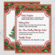 En vacker julmålare i bord (daglig specialmeny) med anpassade-menyspecialitet på röd plaid-bakgrund med mull- och bäraccenter. Underbar för din restaurang helgdag bord eller helgdag barrumsmat.