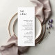 Behålla din bröllopsmottagning bord elegant och tidlöshet med den minimalistiska svartvita bröllop-menyn. Designat med modern typografi och en ren layout är det här anpassadet-middagskortet perfekten för att visa din information om mottagningsmåltiden i stil. Anpassa till namn, bröllop-datum och kurser-menyn - från cocktails och aptizers till entrées och desserts. Dess mångsidiga utformning parar vackert med alla bröllop-teman, vare sig de är moderna, klassiska eller svarta. Koordinera matchande bröllopsinbjudningar, OSA kort, tackkort, bordsnummer, vin-märkre och presentkort för en komplett kontorssvit. Perfekt för: Bröllopmottagningar och Elegant för repetitionsmiddagar måltider Black & white eller modern minimalist bröllop Par tittar för tidlös, snyggt stationär kontorsutrustning