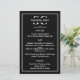 Den här tidslösa och sofistikerade bröllop-menyn har en klassisk svartvit design med en dekorativ delare. Elegantens utformning utplånar modern charm samtidigt som man bibehåller en aning tradition, perfekt för par som uppskattar raffinerad estetik. Den här utformningen, som är tryckt på en högkvalitativ kartong, anger tonen för en snyggt och ett minnesvärt firande.