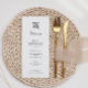 Öka din bröllop-matupplevelse med den här moderna, handritade bröllop-menyn. Med elegant, handgjorda illustrationer parade med en ren och minimalistisk layout blandar den konstnärliga symbolen med en sofistikerad contemporary. Perfekt för alla bröllop-teman visar din noggrant kursiverade meny i ett format för snyggt som imponerar på dina gäster. Helt anpassade, det är idealiskt för att ge din speciella dag en personlig beröring samtidigt som du förbättrar din mottagningsdekoration.