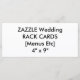 Rackkort för anpassningsbar-meny och program, tryckt på lagrar med en vit täckningsgrad (100 lb.) med en glans avslutat, högkvalitativ utskrift av fullt-färg och fullt. Alternativ på 4 tum x 9 tum (porträtt) eller 9 tum x 4 tum (liggande). Minst 25 kortbeställning. Upp till 50 % rabatt på bulkorder. Zazzle Anpassningsbar Personlig Bröllopsinbjudningar och essentialer.