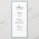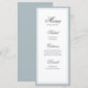 Klassiskt menykort för bröllop med brud och groom namn. Elegant traditionellt skript i mörk grått i en mjuk, lätt dammig dubbla gräns. Blått bakåt. Om du vill justera layouten klickar du på Personlig, redigerar text och klickar sedan på och drar textavsnitten till önskade platser. Använda Ctrl för att markera och flytta många-avsnitt vid gång.