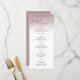 Ett elegant bröllop-menykort designat med en förfinad beige bakgrund som markeras av den klassiska dammen snöre överst, med ornitade detaljer, kapitaliserade rubriker och en fantastisk typografi, som skapar en tidlös och formell design för en sofistikerad bröllopsmottagning.