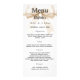 Menykort för födelsedagsfest. Anpassa och lägg till namn, ålder, datum och meny. En vit bakgrund och en stor beige, gräddbög med färgad.