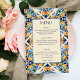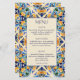 Blåfärgad och brun vintage Mexikanska talavera azulejo-plattor bröllop-menykort, handskriftsteckensnitt för avslappnad färgstarka talavera plattor vintage-menykort för ornament