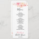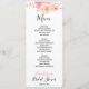 Blommigt runt menykort för Möhippa med utbytbar rosa och svart text utskriven på vit bakgrund