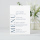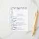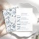 Förbättra charmen i ditt romantiska moderna bröllop firande med detta sofistikerade och polerade menykort. Den här vackra designen har ett krångligt mönster, försedd med delikat dammigt blått och grått-blommor, och är upphöjd med personifiering, som visar namnen på bruden och brudgummen på baksidan.