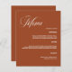 Färgad för bränd orange, bakgrund. Anpassa och lägg till namn, datum och meny. Vit text. 1 lakan = 1 meny utskriven kant till kant.
