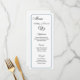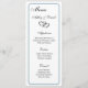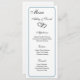 Det här bröllop-menykortet visas på grundläggande papper i en gräns-utskrift i en färg med rökblå färg med två hjärteutskrifter. Skript och standardtext i en Black färg. Anpassa genom att klicka på knappen Anpassa, leta upp höger och hitta lämpliga rutor för att ändra informationen.