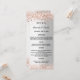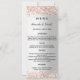 Ett elegant, glamoröst bröllop-menykort. Anpassa och lägg till namn, datum och bröllop-menyn. Faux silver tittar bakgrund, dekorerad med ro guld konetti.