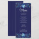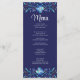 Lägg till elegans till din mottagning bord med vårt "Tunga blåa mexikanska Blommigt Fiesta Bröllop-menykort". Det här kortet har en fängslande marin blå bakgrund med handmålad blå blommigt och är sofistikerat och stil. Ange tonen för ett dynamiskt firande med de här menykorten för chic, perfekt för att fånga en mexikansk fiestas innersta väsen. Den skarpa vita texten presenter din menyinformation elegant mot bakgrund av rikens flotta, vilket ger en liten förfining och stil till din bröllop-dekoration.