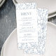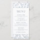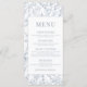 Elegantens moderna Fransk inspirerade till dammiga blåa blommönster-menykort från bröllop.