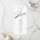 Det här menykortet för elegant har kalligrafi och traditionell design. din matmeny med gäster och i stället för att lämna baksidan av kortet tomt tillför du ett hjärtligt tack.