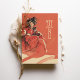Det här fantastiska bröllop-menykortet har en sofistikerad Art nouveau-design i en rik med varma terracotta, vintage röd och koralltoner. På framsidan visas en elegant som illustrerar en kvinna i blomning som påminner om tidigt 1900-talets estetik, och som tillför en gnutta romantisk nostalgi till alla bröllop-teman. Kortets baksida visningar en snyggt placerad meny med ett grafiskt, klassiskt teckensnitt som kompletterar vintagens känsla. Perfekt för bröllop med ett vintage-, bohemiskt eller konstnärligt tema kombinerar det här kortet elegans och tidlös stil för att imponera på gäster och höja bord-inställningen.