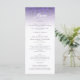 Det här elegant bröllop-menykortet har en bakgrund för rikens lila och har en dekorativ utformning av damm snöre överst, parad med snyggtens vita manustypografi, skapande en sofistikerad och porerad presentation. Layouten lyfter fram en förfinad bröllop-måltid med flera kurvor inklusive friska organiska starter, ett urval av hackat nötkött, örkryddade kycklingmedallioner eller sökta mahi Mhi entrées, en namnteckning mandel- och vanilj bröllop-kakaodessert, skapar det som ett tidlöst och klassligt val för formella mottagningar.