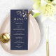 Menykort för elegant - marint blått Blommigt Bröll Meny