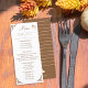 Ett platt menykort för elegant med alternativ för aptisatorer, plagg, sidorätter och efterrätter som serveras på ditt fallbröllop. © ArianeC Illustrations-Alla höger reserverade