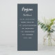 Program- och menykort. Anpassa och lägg till ditt namn, datum och menyn. Bakgrund för färgad av kol-grått, vit text.