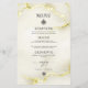 Luxuriösa Guld Marble Struktur Bröllop-menykort. Öka din bröllopsmottagning med de här lyxeriösa Guld Marble Struktur Bröllop Menu-korten. De här menykorten för elegant är utrustade med en fantastisk bakgrund från guld marble struktur och visar en känsla av opulens och sofistikering. På framsidan visas parets namn elegant i blommigtens typsnitt, tillsammans med platsen och datumet för ditt speciella firande. På motsatt sida visas menyn med samma lyxiga guld marble struktur och visar en taggig matris med startare, kurser och desserter som visas i elegantens typografi. De här vackert designade menykorten kommer inte bara att informera dina gäster utan också tillföra royalets elegans till ditt bord för bröllopsmottagning. Skapa ett bestående intryck med dessa unika och lyxiga menykort som helt kompletterar din speciella dag.