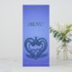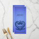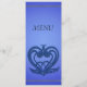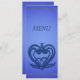 Middagsmenykort, med middagsmenydesserter, måltid namn. för bröllop och alla andra möten, ceremonier. designat med blått snurra blommönster.