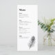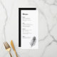 Menykortet med minimal Bröllopsdag för design innehåller en illustration av elegantens pjäsradarrafik med ett klassiskt svart-vitt färg-tema. Det här biet är ett redo för dig att anpassa dig till din menyinformation. Bläddra bland Black Peacock Feather Bröllop Suite för matchande artiklar i ett ständigt växande sortiment av papper.