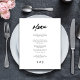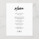 Höj stil i din bröllopsmottagning med moderna minimalistiska manus-menykort för bröllop, designade för en mängd olika chic- och contemporary. Dessa menykort är perfekt för moderna bröllop, minimalistiskt firande, elegantens svarta affärer och snyggtens destinationsbröllop. Med ren skripttypografi och en elegant design paras de på ett vackert sätt med enkla men sofistikerade décor, färg paletter för neutralt och inställningar för contemporary bord. Oavsett om du är värd för ett intimt möte eller ett stort mottagningsbevis ger dessa menykort en elegant och ett tidlöst sätt att visa din meny och öka den övergripande ambitionen för din speciella dag.