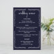 Det här är min nya sofistikerade meny och elegant bröllop i en djup blåsvart nyans, försedd med ett leafy dekorativt gräns och med ett modernt skript i snyggt.