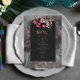 Det här vackra menykortet för mörk och moody blommigt har en fantastisk kombination av peony, ro, petunia och lilac-grafik som du enkelt kan anpassa med dina egna detaljer.