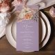 Menykort för persiko- och Lila Blommigt Bröllop Meny