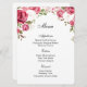 Menykortet visas med en teckning av underbar rosa ros, accentuerad överst på kortet, som visas på det vita kortets papper. Skript och standardtext i ett svart färg. Anpassa menyalternativen genom att klicka på Anpassa redigeringsknappen, leta efter höger och hitta lämpliga rutor för att ändra informationen. Jag önskar dig bäst önskemål för din Bröllopsdag.