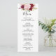 Det här röda tropiska och romantiska menykortet är perfekt för ett rustiskt bröllop. Den konstnärliga utformningen av Border marsala har vattenfärg, grönt, rosa, burgundy och ro, som har en grön, nyttigt placerad blombukett i en strålande och strålande blombukett. Den här menyn kan användas för bröllopsmottagning, repetitionsmiddag, möhippa eller vilken händelse som helst.