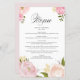 Menykort för Romantisk Rosa Watercolor Flowers Brö