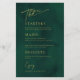 Menykortet Royal Emerald Grönt Guld Islamic Bröllop. Det här menykortet i bröllop är en riktig duschpropp! På framsidan finns en vacker bakgrund till grönten vid frammarsch med elegant guld-kalligrafi. Det börjar med "Bismillah" och den arabiska frasen "wa khalaqnakum azwaja" (som betyder "Och vi skapat dig i par"), följt av parets namn, datumet bröllop och platsen. Baksidan är också grönt, och den visningar elegant "Menu" överst. Själva menyn presenteras på ett utmärkt sätt i kalligrafin i guld, där alla utsökta starter, huvudstjärnor, kurser och efterrätter listas. Det är en verkligt speciell beröring för bröllop firande.