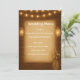 Med det här menykortet för elegant kan du lägga till en liten knapptryckning till inställningarna för bröllop bord. Med en glödande ljus, burk-lyktor och ömtåliga blommor i burk mot träbakgrund, är denna utformning perfekt kostym lada bröllop, land firande eller rustiska chic. De varma tonerna och mysiga stil gör det enkelt att koordinera med olika teman samtidigt som du lämnar utrymme för information om personligens meny.