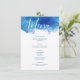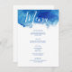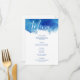 bröllop-menykort med abstrakt blå vattenfärg gräns som skrivs ut med anpassningsbar för att samordna med vår Sapphire Tide-samling. Anpassa texten med menyalternativen bröllop. Använda verktyg för designen om du vill redigera typsnitt och färg eller flytta texten runt för att passa dina menyval. Den här oceaninspirerade designen är perfekt för ett destinationsbröllop på stranden!