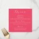 Lägg till ett dynamiskt popup-fönster från färg till bord i bröllop med det här shock rosa-kvadratiska menykortet. Med ett vitt skript för elegant på en fetstilt bakgrund och en mjuk blommigt på baksidan, ger den här menyn snyggt till vår eller sommartid i firande. En perfekt som avslutar beröring för bord.