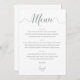 Menyn elegant silver bröllop. Perfekt för att låta dina gäster veta vad som är på middag.