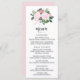 Söt och feminin-menykort med rosa vattenfärgsro. Detta kort är perfekt för vår och trädgårdsbröllop. Matchande objekt är tillgängliga.