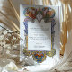 Det här vintage-menykortet inspireras av Cunard Line-linjens ikoniska stil och frammanar elegansen i 1900-talets resor i tidigt och lyxen i Titanic-eran. Den främre konstruktionen visar en kompakt vapensköld i Art nouveau med Cunard Line-emblemet, med dekorativa motiv i rik blått, guld och rött. Baksidan av presenter är en vackert formulerad meny med elegant illustrationer av det påstådda figurer, som skapar en tidlöst sofistikerad atmosfär. Perfekt för temat bröllop, formella målare eller samlare för historiska minnesmärken. Det här menykortet lägger till en liten del av vintagens opulens till varje händelse.
