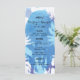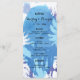 Loving i sommarnätterna? Modern och färsk design har kokokosnöt träd över en vattenfärgsblått och lila bakgrund som påminner om coola nattens himmel, vilket sol redan har fastställt. De tropiska menykorten i bröllop är helt och hållet radresor, utomhus eller målbröllop.