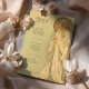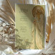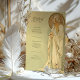 Det här enastående Art nouveau-inspirerade menykortet för bröllop kombinerar lyxfria gyllene nyanser med mjuk kräm- och beige-accenter, skapar en elegant och tidlös design. Framsidan har ett mycket detaljerat figur med blomningsställ, guldförsköning och en strålande cirkulär halo som dekoreras med utvecklad mönster. På baksidan markeras menyn med ett sofistikerat serif-teckensnitt som harmoniserar med vintagens estetik. Den här designen är perfekt för bröllop med klassiska teman, vintage eller gyllene teman, som ger en finare konst och sofistikering. Den varma, nedsänkta paletten och den exekutiva informationen gör detta menykort till en unik nyckelfråga för din speciella händelse.
