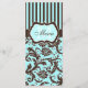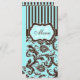 Det här monogrammade akvblått, brunt och vitt rand med blommigtens modersmjölkkort matchar den bröllopsinbjudan som visas nedan. Det är designat på ett rackkort så framsidan är glansig och baksidan har en projektionsyta avslutat. Om du vill ha ett menykort på inbjudan som är pappert för att matcha din inbjudan, eller om du har några förfrågningar om ytterligare objekt eller ändringar, kan du skicka e-post till niteowlstudio@gmail.com med din förfrågan.